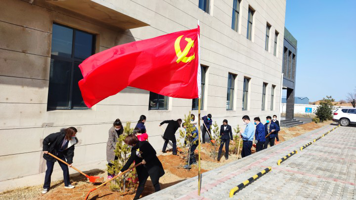 遲日江山麗,春風花草香。在第42個植樹節來臨之際,新型能源神木分公司廣大黨員志愿者義務植樹活動在公司廠區內隆重舉行。大家揮鍬挖坑、扶苗培土、澆水平基,植樹現場熱火朝天。