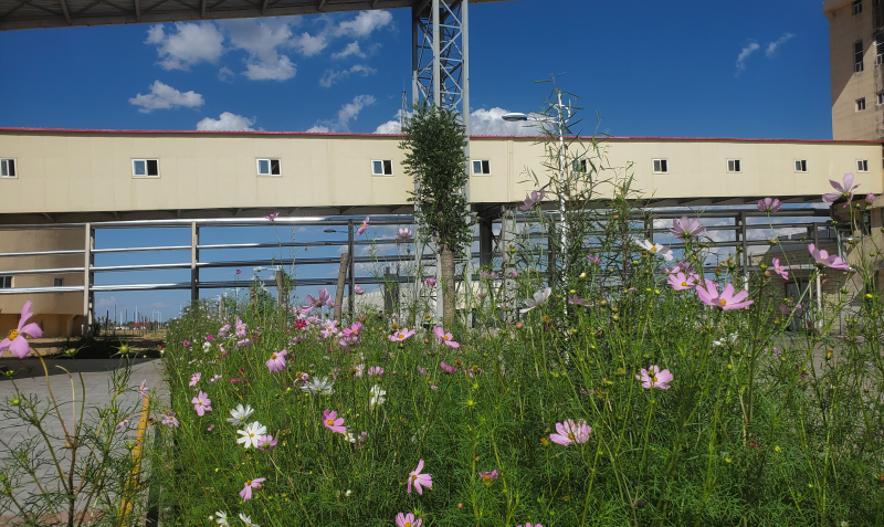 在日常工作之余,組織員工對廠區周圍空地平整綠化,撒種栽苗,除草灌溉,經過半年辛苦努力、精心呵護,昔日光禿禿的黃土地如今花團錦簇,為職工生活環境帶來濃濃綠意。