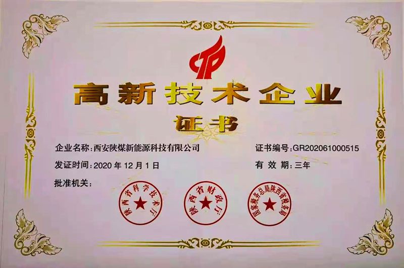 近日,西安陜煤新能源科技有限公司(以下簡稱“西安新能科技公司”)順利通過了陜西省2020年度高新技術企業認定,并獲得由陜西省科學技術廳、陜西省財政廳、國家稅務總局陜西省稅務局聯合頒發“國家高新技術企業”認定證書,由此標志著該司正式跨入國家高新技術行列。